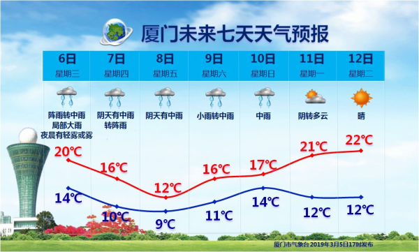 - [03-04] 厦门今日晴冷短暂气温将探到13℃附近 明起春雨绵长