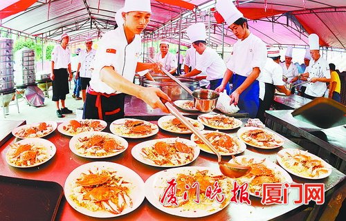 22口大锅,上百名工作人员,为老人精心烹饪美味佳肴。 22口大锅齐开火 上百人一起张罗 昨天的“千叟宴”全部由味友餐饮管理有限公司负责。现场负责人王鑫介绍,这次,22口大锅齐齐开火,上百名工作人员共同服务,为老人们送上热气腾腾的美味。早在一个月前,他们就开始做相关的准备工作,这几天都忙到凌晨,为了保证新鲜,鱼虾都要求活的,在现场宰杀。他们还为老人们精心准备了上千个手工制作的寿桃。 |