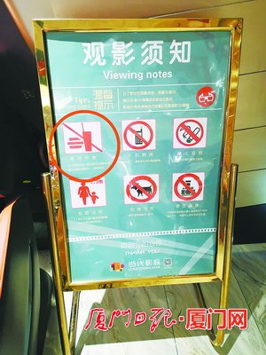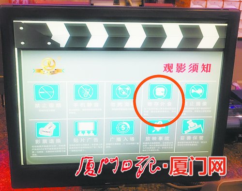 湖里万达广场的万达影城在观影须知牌上表明,希望观众主动寄存异味大、有异响食品。
