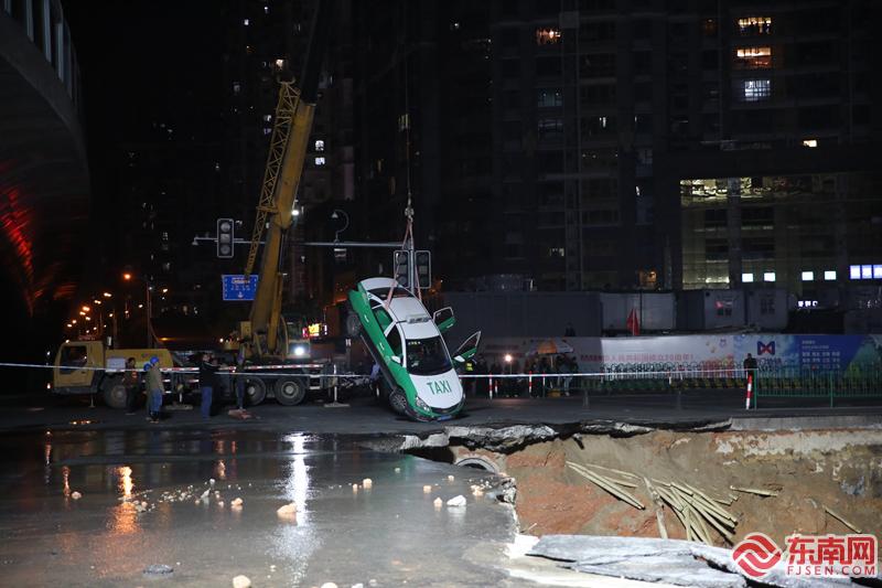 厦门吕厝路口塌陷现场正在处置 东南网记者 李霖 摄