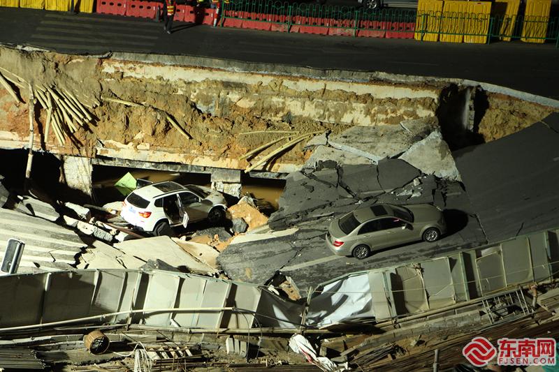 厦门吕厝路口塌陷现场正在处置 东南网记者 李霖 摄 东南网12月13日讯(本网记者 卢超颖)12月12日晚上21时50分许,厦门市思明区吕厝路口发生大面积地面陷落。事故发生后,省委常委、市委书记胡昌升,市长庄稼汉等迅速赶到现场,成立应急抢险指挥部,指挥抢险救援。 胡昌升、庄稼汉要求,要把人民群众的生命财产安全摆在第一位,迅速开展各项抢险工作,全面排查安全隐患;要尽快对周边地块进行勘察和监测,确保不发生次生灾害;全市各级各部门要举一反三,迅速开展安全隐患排查和整治。经现场勘测,事件对周边房屋、桥梁的安全不会产生影响。 根据“@厦门地铁”官方微博信息:12日21:52许,厦门地铁2号线吕厝路口配套的物业开发地块施工现场发生约500平方米塌陷,水管破裂,途经现场的两部轿车滑入,车上人员自行安全撤出。经厦门市消防救援支队反复排查,塌陷现场无被困人员。公安、消防、市政、建设和市地铁办、轨道集团等部门和单位第一时间赶到现场,积极组织疏散、抢修和勘察等工作。交警迅速疏导周边交通,现场交通秩序正常。 当晚,记者赶到现场时看到,由吕岭路往嘉禾路及湖滨北路方向已拉起警戒线。公安、消防、水务等部门已赶到现场,正积极组织抢修。现场有2部电气试验车停靠路边待命,聚集了众多围观市民。 “当时轰的一声,声音非常大,地面和整栋楼都在震动,很多人都以为是地震了。”位于吕岭路上的同亨大厦距离事发地点不足百米,该大厦停车场保安汪先生告诉记者,当时他爬上护栏,看到原先的车辆右拐道整个都塌了,有车子掉到坑里,塌陷范围足足有四五百平方。一位刚从吕岭路经过的电动车骑手,见状赶紧把车子丢了,从他身边逃开。 记者在吕岭路和莲花北路看到,厦门水务工作人员正在沿路进行抢修测压。13日0时10分,据现场工作人员称,目前,莲花北路沿线小区供水受到影响,1楼以上供水水压低。 12月13日02:10分,“@厦门地铁”官方微博发布信息:截至今日凌晨1时,各项措施正在有条不紊地推进中,正组织专家对事故原因进行调查。