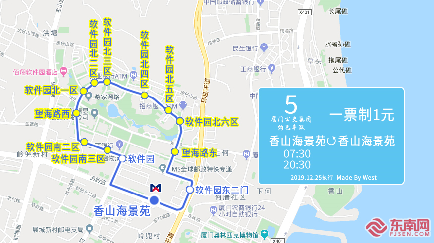 东南网12月21日讯(本网记者 刘玮)12月25日上午8时30分起,厦门市轨道交通2号线将于开通初期运营,并与已开通的1号线形成十字交叉的轨道交通网络。为方便市民乘客接驳轨道交通2号线,12月25日起,新增2条线路,调整5条线路;12月28日起,新增2条线路,取消3条线路;12月31日起,取消5条线路,后续将根据实际运营情况做出相应调整。 12月25日起,新增2条线路,调整5条线路 记者了解到,25日起,为方便软件园二期园区内乘客接驳地铁2号线软件园二期站,将新增5路公交车。该线路为香山海景苑环线,途径吕岭路、前埔东路、观日二路、望海路、观日二路、环岛干道、吕岭路。 停靠站点为香山海景苑、软件园、软件园南三区、软件园南二区、望海路西、软件园北一区、软件园北二区、软件园北三区、软件园北四区、软件园北五区、软件园北六区、望海路东、软件园东二门、香山海景苑。其中,软件园南三区、软件园南二区、望海路西、软件园北一区、软件园北二区、软件园北三区、软件园北四区、软件园北五区、软件园北六区、望海路东为软件园二期园区内虚拟站点。 该线路工作日高峰7-10分钟一班,平峰15-20分钟一班;非工作日15-20分钟一班。首班7:30发车,末班车时间为20:30。 |