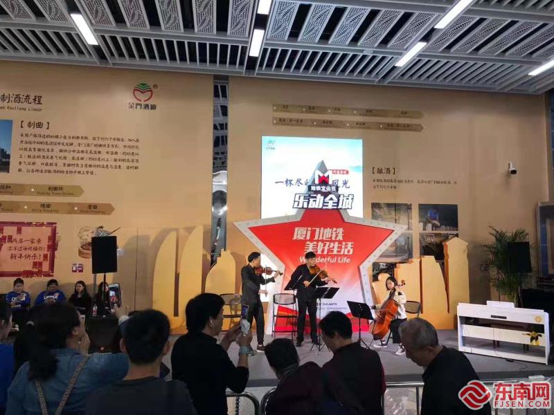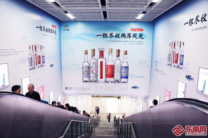 金门酒厂(厦门)贸易有限公司关负责人介绍金酒文化与地铁站的融合。东南网记者 刘玮 摄 东南网12月26日讯(本网记者 刘玮)12月25日是厦门地铁2号线正式运营通车的第一天。当天,为迎接厦门进入双地铁时代,厦门市在沿线部分站点举办了地铁文化节,吸引了不少厦门市民前来体验打卡。而站点周围则处处展现了金门风光,具有两岸风采。 当日,不少市民在经过邮轮中心地铁站时,纷纷驻足观看在这里举办的一场场音乐沙龙。整个站点分别从人文风俗与年轻现代两条线进行设计,记者搭乘手扶梯,只见手扶梯下到地下站点的四周墙壁,通往站点的廊道以及地铁等候区都有关于金门高粱酒不同主题特色的呈现。 “一杯酒尽显两岸风光”“真实不勾兑 每一口都是生活”,这是金门酒厂在坚持品质所展现出来的诚意。“我们希望能将最具金门文化的金门高粱酒全方位地呈现给民众,以不同颜色风格展现其特点,科普金门酿酒的历史及工艺,让大陆民众能更了解金门的传统手艺。”金酒酒厂(厦门)贸易有限公司负责人说。