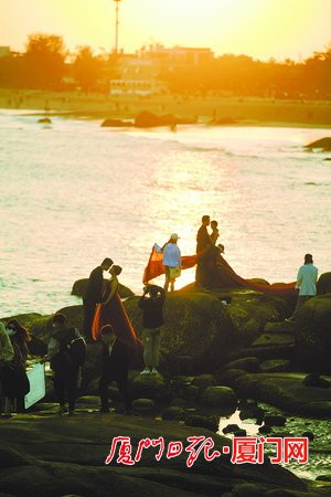 最美厦门四月天 吸引外地新人拍婚纱照 业内人士表示,厦门是许多内陆城市新人首选的婚纱拍摄地