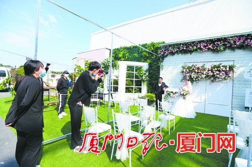 环岛路上,到处可见婚纱拍摄。 厦门日报讯(文/全媒体记者 邬秀君 图/全媒体记者 张江毅)洁白的婚纱裙摆,随四月的海风飘荡出隽永的弧线,定格在鼓浪屿天风海韵的别样景致中……天气晴好,各大景区开放,连日来记者走访发现,“一城春色半城花、万顷波涛拥海来”的厦门,已然迎来了一众即将走向婚姻的人们,厦门的婚纱摄影行业正在回暖。 外地新人特意到厦拍婚纱照