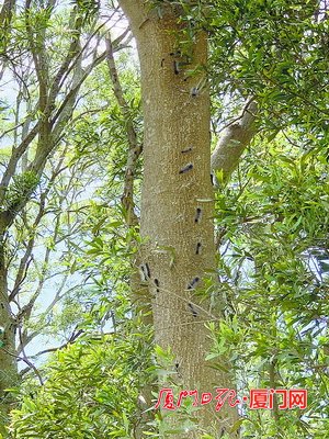 树上爬着的苔蛾幼虫。 厦门日报讯 (文/图 记者 邬秀君)全身长着长毛,呈黑色,长五六厘米……近日,市民张先生反映,在东坪山洪厝埔站往东山社站的路边,虫子扎堆在大石头和树干上,让人担心。昨日,记者前往现场调查,并采访了绿化方面的专家。 上百条毛毛虫爬在石块上 还有虫子垂丝悬在半空中 昨日上午,记者来到位于东坪山的洪厝埔站。沿着这个站点往东山社站方向走,记者看到,路边地面上有黑色虫子被人踩死或被汽车轧死的痕迹。再仔细往路边的树上看去,发现许多树上都有黑色毛毛虫。市民张先生告诉记者,以前这种虫子是赤红色的,现在都变成黑色的,“身上黑得发亮,让人心慌慌”。 沿着路一直走,记者找到了张先生提到的一块大石头。这块石头让人触目惊心,因为石头上密密麻麻地爬满了上百只黑色毛毛虫。路边有些树上,同样也“盘踞”着上百只黑色毛毛虫。 此外,有些虫子从树枝上垂丝而下,时刻有掉落的可能。在现场,一名女士因为虫子差点落到她的身上而吓了一跳。 苔蛾幼虫具有趋光性 相关部门表示将去处理 这种毛毛虫到底是什么虫,会危害到人吗?市绿化中心高级工程师张华峰说,这种虫子是苔蛾幼虫,是一种专吃苔藓的虫子,无毒。不过,有的人接触这种虫子后,可能会产生过敏。 张华峰还说,这是一种鳞翅目灯蛾科昆虫的幼虫。一只雌性飞蛾一次产卵可达300颗至400颗,即使存活率只有三分之一,经过一年繁殖,虫子的数量也会暴增。 至于这种幼虫为什么会悬吊在空中,张华峰解释,这种虫子具有趋光性,早晨从相对阴暗的栖息地爬上树干或高处,当外界光线充足时,便从高处的树上吐丝垂吊下来,随风飘荡,到另外有苔藓的地方取食。 张华峰表示,近年来厦门生态环境不断优化,东坪山没喷洒农药,这是苔蛾幼虫大量出现的一个原因。他指出,如果虫子影响景观,可用白僵菌等生物制剂消杀防治。 随后,记者把相关情况反馈给绿化部门,相关负责人表示,会去现场查看,并进行处理。 【提醒】 昆虫掉落到身上 用肥皂水冲洗 可起消毒效果 专家提醒,市民在户外活动,如果遇到昆虫掉落到身上,请不要惊慌,应立即将昆虫弹掉或吹走,随后用清水或肥皂水认真冲洗被昆虫触碰到的身体部位,可起到一定的消毒效果。 |