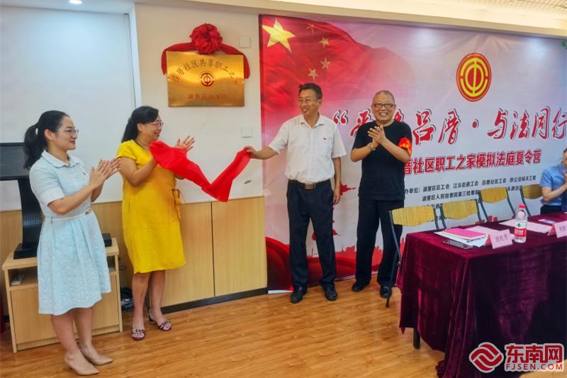 吕厝社区“共享职工之家”揭牌仪式(东南网记者 刘玮 摄) 据了解,活动旨在为吕厝社区工会职工服务平台打造高质量、高效率的服务产品体系,让辖区职工及其家庭可以在家门口享受社区工会带来便利与高质量服务,共同为“爱心厦门”建设助力,为职工家庭子女送上温暖关怀,丰富职工子女的暑期学习生活。 本次活动由湖里区总工会、江头街道工会委员会、吕厝社区工会联合会、市公安局关工委、湖里区人民检察院第三检察部、禾山法庭、江头派出所、江头街道团工委、吕厝社区团委联合主办,培善社会服务中心承办。