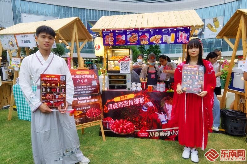 人间烟火气,最抚凡人心。不少闻讯而来的市民携家带口在夜市里品尝美食、游玩享乐。在众多摊位中,肯德基餐车前的两位汉服cosplay模特让人眼前一亮,摊位上新推出的“灵魂宵夜”同样吸人眼球。肯德基的工作人员告诉记者,此次晚风市集将持续至10月8日,每周末和节假日的16时至22时他们都将与市民相约。