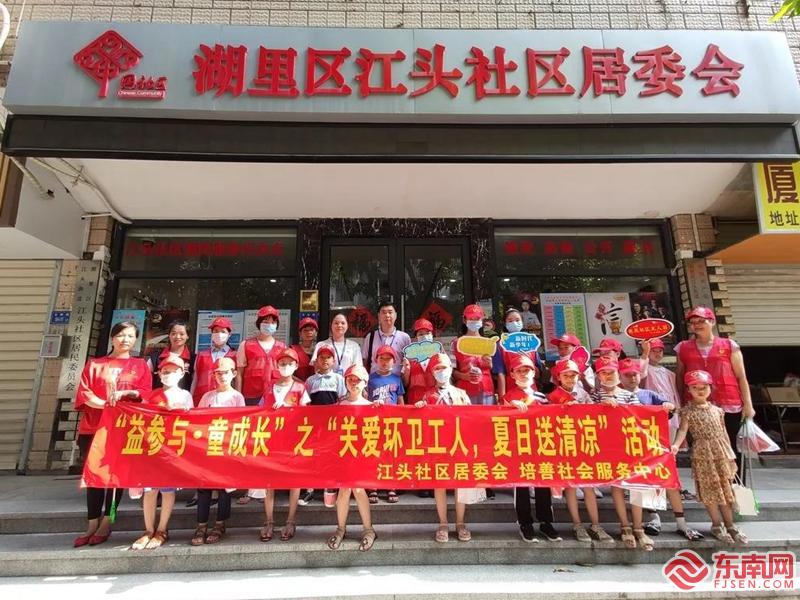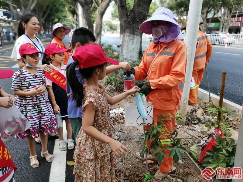 厦门江头社区:小志愿者高温送清凉 关爱环卫工人