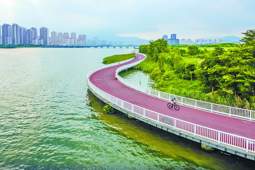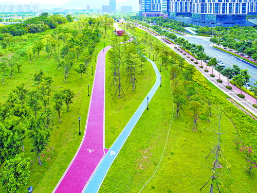 位于软件园三期附近的集美新城慢行系统一期工程产业绿道示范段投入使用。 (林志杰摄)