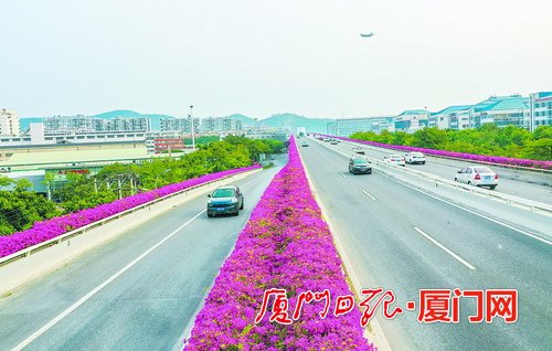 疏港高架桥 厦门日报讯(文/全媒体记者 徐景明 图/全媒体记者 王火炎)遥望一团火,近观满树花。厦洽会期间,市花三角梅进入盛花期,将整座鹭岛变成花的海洋;“一城春色半城花,万顷波涛拥海来”,看着盛放的三角梅,更让人理解高颜值生态花园之城的魅力所在。 全市哪一片三角梅开得最旺、最美?当属岛内的门户道路——从滨北立交桥、邮轮中心到疏港高架沿线。“在市交通局公路中心所属重要路段以及岛内12座天桥,我们已经连续开展多年的三角梅控花技术攻关,目前,课题已经进入收官阶段,”市交通局公路中心联合厦门万银环境科技有限公司课题组成员郭杭琪笑着说,“课题成果好不好?大家看看这些三角梅就知道了。” 控花技术是关键 让市花9月进入盛花期 控花,顾名思义,就是用技术手段调控三角梅的开花时间,让其在人们期望的重要时间节点盛放。正常来说,厦门常见的小叶紫三角梅在3-4月份和7-8月份开花、同安红三角梅虽然全年可开花,但盛花期则在3-4月份和10-12月份——也就是说,让市花在9月份进入盛花期,控花技术是关键。 这些技术,不是简单的浇浇水、喷喷药。翻阅数百页的技术攻关材料,无论是基质(土壤)、设施设备,还是品种选育与开花管理,每一大类下细分若干个小类,细节之多令人咋舌,处处体现着科研的严谨。 几个通俗易懂的细节,足可说明问题:比如,厦门是海湾型城市,种植三角梅要克服盐碱地的影响,尤其要考虑空气中盐雾的影响,为此,工人们要定期将三角梅叶面上的盐分洗掉;专用的控花药剂,并不是“一剂通治”,而是要像“中医四诊”一样,先给三角梅“号脉”,察看生长和花芽分化的状态,结合气象资料,再对药剂进行适时适量的“加减味”;盛花期过后,为了尽快让三角梅恢复元气,工人们会给其施肥“坐月子”,然后摘除花苞、喷洒药物加速落花,提高三角梅的自净能力,缩短进入下一个盛花期的时间。 |