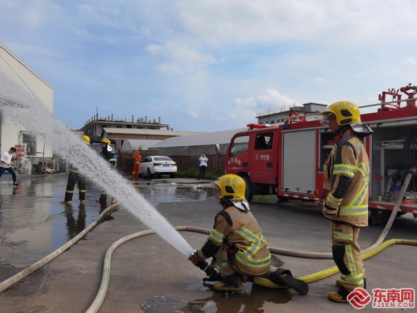 6月30日下午,尖锐的警报声响起,厦门市同安区五显镇四林村工业园发生火情。事态紧急,20多名消防工作人员紧急出击,冲入火场疏散群众,扑灭明火。原来,这是同安区五显镇联合五显消防中队、四林村举行的一场消防安全演练。