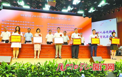 同安区为“2020年度捐资兴学先进单位”颁发牌匾。