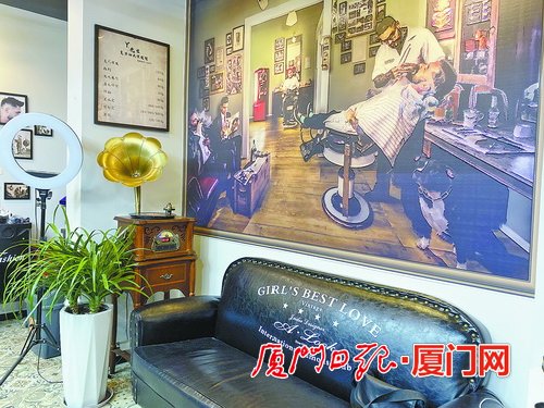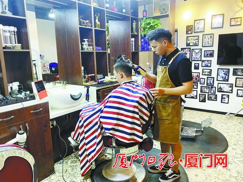 可理发烫发剃须修面 可与其他顾客聊足球篮球 打造“最靓的仔” 男士理发店走红 记者走访发现,这种理发店在厦门不到十家,顾客多是商务人士和注重形象的大学生