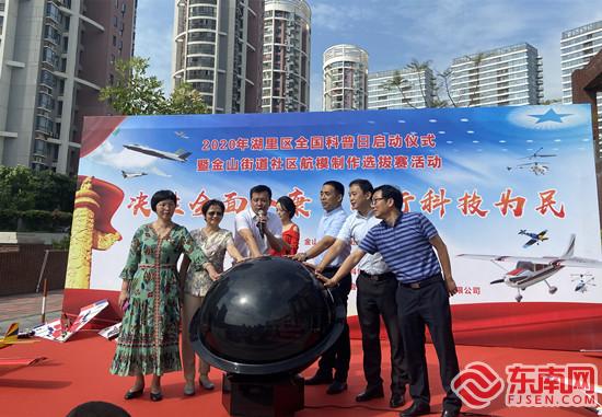 2020年湖里区全国科普日启动仪式现场(金山街道供图) 东南网9月26日讯(通讯员 黄琳)26日,2020湖里区全国科普日启动仪式暨金山街道社区航模制作选拔赛活动在厦门市金海社区文化广场举办。 此次活动围绕“决胜全面小康 践行科技为民”科普日主题,重点突出弘扬科学精神,展现科学价值;助力疫情防控,推动健康科普;聚焦脱贫攻坚,决胜全面小康;加强科技志愿,彰显科技为民等内容。 在启动仪式现场,6架长征三号模型火箭依次发射升空。来自厦门大学航空航天学院的格尔航空航天科普教育团队还带来了纸飞机航模表演,获得了观众阵阵掌声。