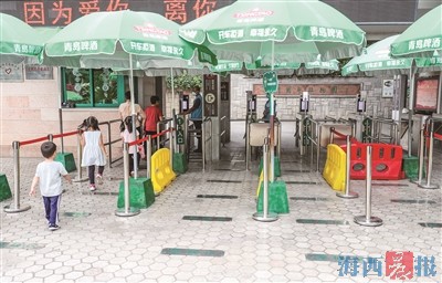 志愿者将在厦门市园林植物园入口处一米线引导游客入园。记者 白斌斌 摄