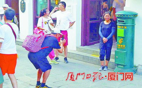 不少游客从鼓浪屿寄明信片回家,还和邮筒合影留念。
