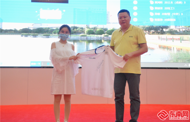 送出冠军签名球衣(陈敏 摄) “体育是凝聚人心的力量,体育是无需语言的语言。”厦门理工学院体育部教师代表黄彩华与同学们分享了自己对于体育精神的理解。该校体育部主任赵少聪则从“必须做”“应该做”“争取做”三个方面为新生们讲解了大学体育生涯的完整规划。 奥运冠军的励志故事、老师和学长的生动诠释,让新生们对学校的体育文化和体育精神有了更深刻的认识。“这是我上过最特别的体育课!”2020级文化与旅游学院文化产业管理班纪舒芯同学表示,这堂课激发了她对体育运动的热情,让她开始思考自己的大学体育锻炼计划,希望在大学四年里做到体育和学习两相促进。2020级国际教育学院财务管理班杨晨欣同学听完奥运冠军吉新鹏的体育故事后感触很深,他表示,自己更深刻地理解了坚韧、努力的体育精神,表示自己会走出宿舍、走进操场,通过体育锻炼进一步提升身体素质,磨练意志品质。 据悉,厦门理工学院历来重视体育工作,积极打造“健康微校园”,大力推广“校园就是运动场”项目,在学校电梯旁、走廊里、小路边贴上二维码,师生只要扫描二维码就可以观看学校老师录制的教导健身的视频,让健身无处不在,营造了积极健康的校园体育文化,推动学生文化学习和体育锻炼协调发展。学校还成立了包括篮球、网球、武术、啦啦操、跳绳、皮划艇、定向越野等项目的19支学生运动队,近年来学校竞技体育成绩不俗,其中高水平健美操队多次在国内外赛场上斩获金牌,女子篮球队多次获得CUBA中国大学生篮球联赛福建赛区冠军,进入东南赛区四强、全国十六强。 |