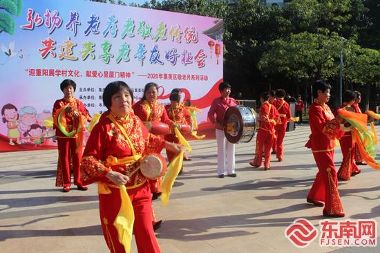 集美街道腰鼓队献上表演,一展老年人精气神。东南网记者 李霖 摄