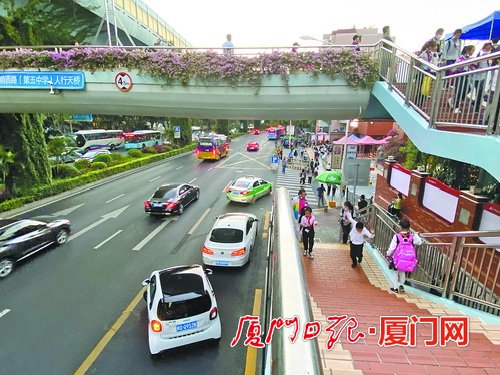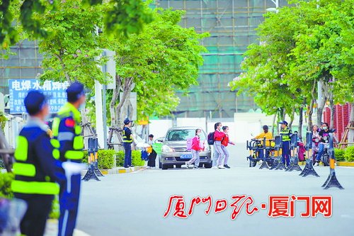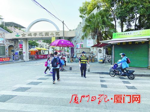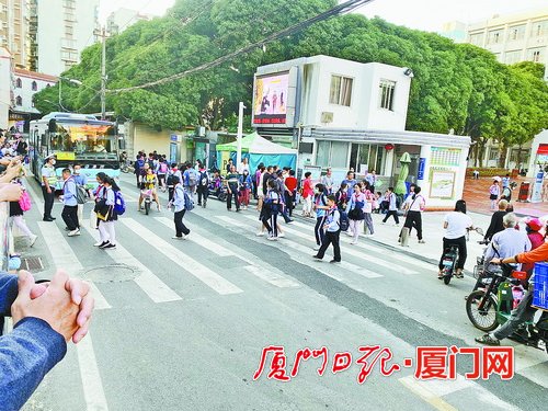 有了义务交警,蔡塘学校门外交通秩序井然。(记者 张江毅 摄) 厦门外国语学校: “蓄车区”利用率高 校门口交通秩序较好 接孩子的车辆有了专门的停车场和车位,并能免费停车半小时,等孩子出校门再开出去接,即停即走——“蓄车区”启用一个月以来,厦门外国语学校初中部接送学的情况如何? 在10月26日下午的放学时间,暗访团来到现场,观察学校周边整体交通秩序。这一边,“蓄车区”内车辆整齐停放,当家长手机收到孩子出校门的信息后,逐渐有序驶离;另一边,在不到一公里外的校门口,学生已在路边等待,车辆即停即走,基本没有出现拥堵。不过暗访团注意到,有个别私家车仍在校门口排队,等待了一段时间才驶离。 对此,厦门外国语学校保卫科主任助理刘震介绍,以前没有“蓄车区”,家长在接送学生时由于存在时间差,便会在学校周围路段开车绕圈,甚至违规占道停放,这就容易导致交通拥堵。如今“蓄车区”投入使用,学校通过发放《致家长一封信》的形式,将“蓄车区”的地理位置、标识等信息告知家长,并通过手环发出学生的即时离校通知,消除了时间差和绕圈等待的情况。 对于还存在少部分接送车辆滞留在校门口及学校附近路段的现象,刘震解释道,这是因为新一批手环还在办理和升级中,因此还有少部分学生没有佩戴上手环。“学校会抓紧办理、尽快发放,并将联合交警部门进一步加强宣传教育,日后还会组织家长义务交警志愿服务队协助引导、管理,共同完善接送学的交通秩序。” 此外,刘震还表示,因疫情防控需要,学校目前暂时关闭西校门,只开放一个出口,便于进行防疫测温等工作;后续开放西校门出口后,也将在邻近的仙人掌道路景观节点处设置临时停车点,进一步方便家长接送。 采取措施 保障校园交通安全 连日来,暗访团经过走访观察,发现部分学校受地形、区域、空间等因素限制,设置“蓄车区”的场所条件比较有限,但学校对校园周边安全和秩序十分重视,想方设法创造条件,化解上下学拥堵和交通隐患,如有的学校加设学生安全通道,有的学校设置临时交通设施,因地制宜处理人车分流,保障校园交通安全。 金鸡亭中学: 复杂地段增设执勤点 引导车辆顺向驶离 10月28日早上7点10分,金鸡亭中学领导、义务交警已准时出现在金鸡亭小区大门口的执勤点。此处是三岔路口,且每条路上机动车均可以双向通行,路况相对复杂;学校设在小区内,大部分学生都需要途经三岔路口进入校园,因此上学高峰期行人、车辆都较多。但暗访团注意到,此处交通消化快捷有效,并未出现拥堵停滞的现象。“这个执勤点是学校今年增设的,为的是确保安全有序通行。”金鸡亭中学德育处工作人员表示,学校总务处负责人每日在此处担任义务交警,劝导接送车辆顺向驶离路口、非必要情况不原路掉头,以防路口三个方向互相拥堵。 另外,由于金鸡亭小区内未实现人车分流,所以在中学门口的缓坡路段,学校也为学生建立专用安全通道,并引导接送电动车停放在规定区域内。据了解,金鸡亭中学计划再设一条安全通道,或进一步改造扩容停车位。 蔡塘学校: 临时分隔车道 缓解非机动车乱象 10月28日上午7点,在蔡塘学校东门,老师和学校安保人员各司其职,引导学生和接送的家长有序入校和离校。在校门口的两处斑马线上,也各有三到四名义务交警和一名家长志愿者共同护学。 暗访团注意到,校园东门前的路段为两车道的单行道,为了保证家长接送学生时的安全,在上下学时段,义务交警等执勤人员会将道路“一分为二”——一条车道机动车正常通行,另一条离校门较近的车道,则引导路过的电动车行驶和停放,实现机动车和电动车的有效分流。“车道分流后,人行道上就基本没有电动车乱窜了。”一名学生家长说道。 康乐二小: 设置临时红绿灯 保障学生过马路安全 10月27日下午4点,康乐二小门口,身着绿色反光服的义务交警已按时到岗,协助执勤交警疏导车辆,指引学生安全通过。学生也均遵守规定,有序通行。 随着人流量增大,需要穿过马路的接送学人群也逐渐增多,校门附近的斑马线处便安置了临时红绿灯,保障人群分批安全通过斑马线,并提醒来往车辆减速慢行。 【灰镜头】