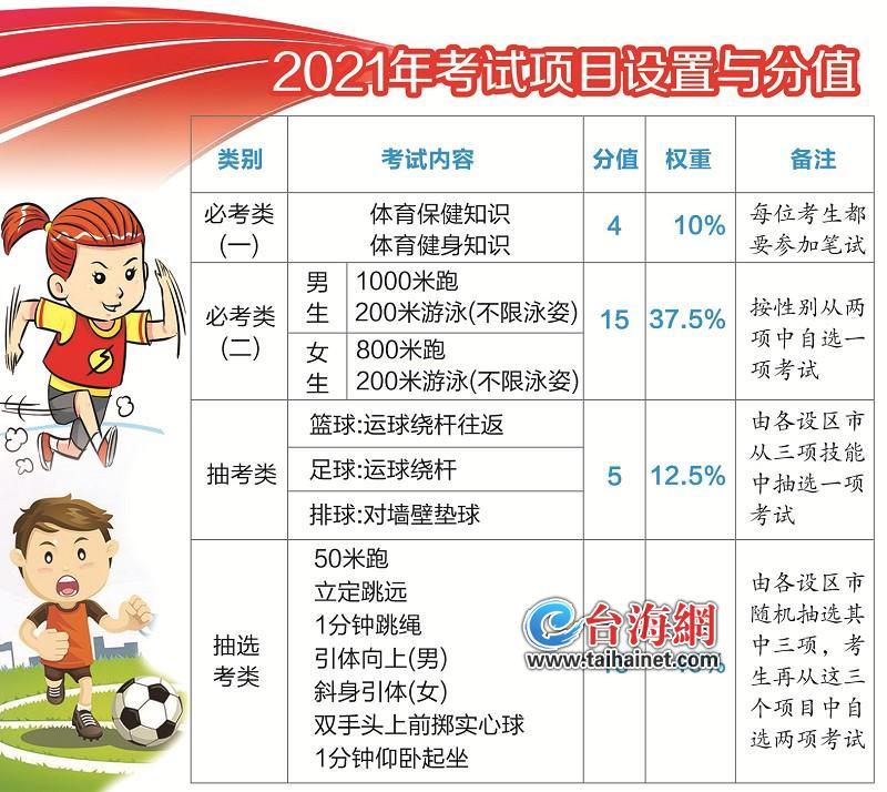 东南网11月5日讯(海峡导报记者 梁静)明天上午9点,厦门市教育局将采用现场抽签方式,进行2021年厦门市体育中考抽考、抽选考类项目抽选工作,并全程进行网络直播。 市教育局说,根据《福建省教育厅关于印发<福建省初中毕业升学体育与健康考试实施方案(试行)>的通知》,从2021年开始,参加毕业升学考试的初中毕业生升学考试中,体育中考总分为40分,其中体育与健康基本知识占4分,身体素质与运动技能占36分。 根据方案,身体素质与运动技能测试工作由各设区市(含平潭)自行组织实施,其中抽考类、抽选考类由各设区市教育局随机抽选。明天市教育局要直播的,就是这个随机抽选工作。 抽考类、抽选考类项目改由市教育局抽选 具体点解释:明年体育中考的身体素质与运动技能测试内容,将首次分为三部分:必考类、抽考类、抽选考类。 首先,必考类也就是每个考生都必须参加的考试。必考类有男生1000米跑、200米游泳,女生800米跑、200米游泳,男女生按性别从两项中自选一项考试。 其次,抽考类即由各设区市教育局从篮球、足球、排球这三项技能中抽选一项考试。也就是说,2021年体育中考三大球类的选考项,不再由学生自己决定考什么,而是改由教育局抽签决定。 第三,抽选考类也就是由各设区市从七项中随机抽选三项,考生再从这三项中自选两项考试。七项备选项包括:50米跑、立定跳远、1分钟跳绳、引体向上(男)、斜体向上(女)、双手头上前掷实心球、1分钟仰卧起坐。 倒逼学生训练所有项目,解决体育应试现象 《方案》说,身体素质与运动技能测试时间,将安排在当学年4月上旬至5月中旬之间。 此前,省教育厅就说明过,明年改由各设区市教育局抽选抽考、抽选考类项目,是为了坚持“健康第一”的教育理念,引导广大学生积极参加体育活动,养成自觉锻炼习惯和健康生活方式,帮助学生在体育锻炼中享受乐趣、增强体质、健全人格、锤炼意志。 据了解,目前,省内各地的体育中考,都由学生自选项目,考生从还没上初中就知道自己体育中考要考什么项目,于是很多学生从始至终就单练考试的项目,结果是体育锻炼也变成了应试体育。抽考和抽选考的设置,就是为了解决这种应试现象,让考生无法太早清晰自己在体育中考中即将考到的具体项目,倒逼他们不得不训练所有项目,从而达到锻炼身体、增强体质等效果。 |