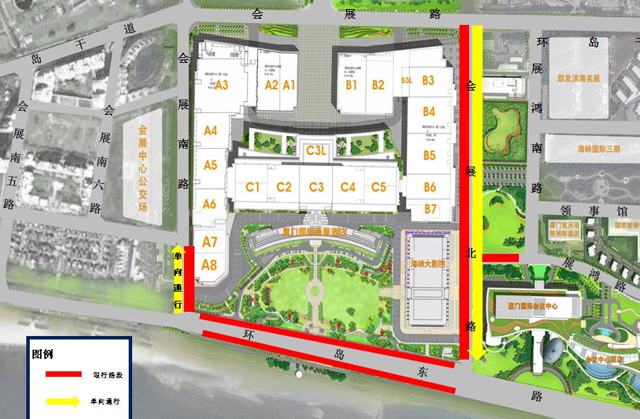 三、2020年11月28日14时至24时,会展北路、展鸿路会展北路路口至展鸿南路路口段、环岛东路会展北路路口至会展南路路口两侧辅道、会展南路环岛东路路口至会展南三路路口段禁止车辆通行。