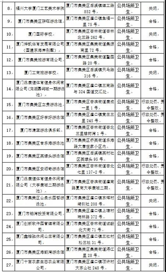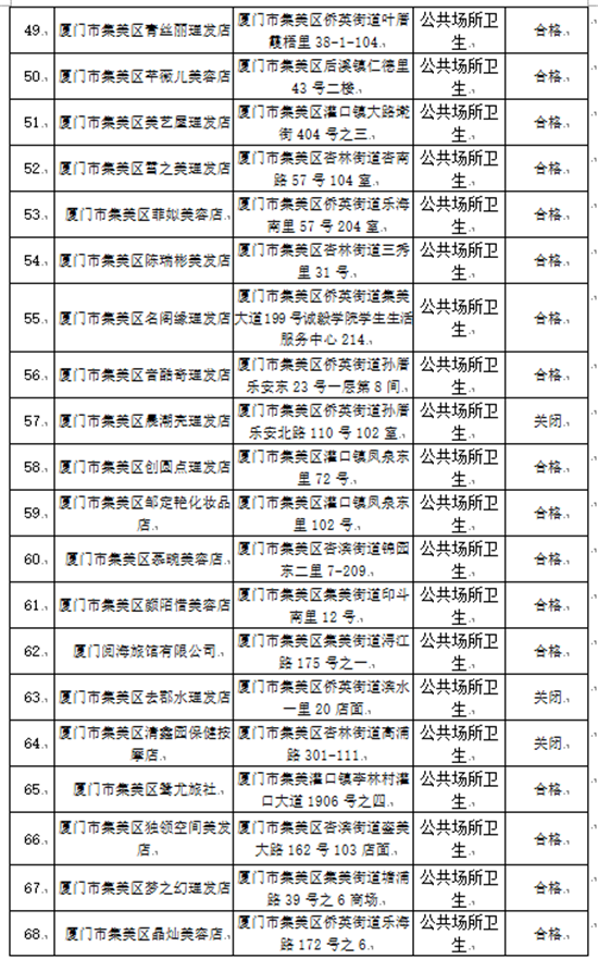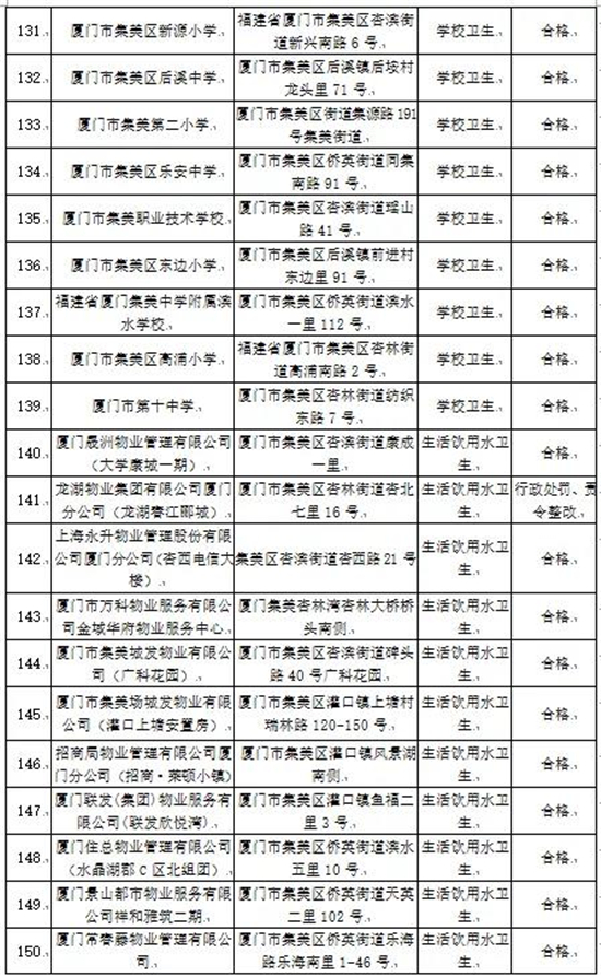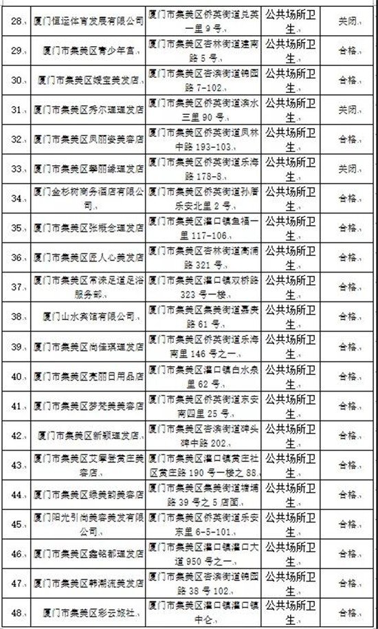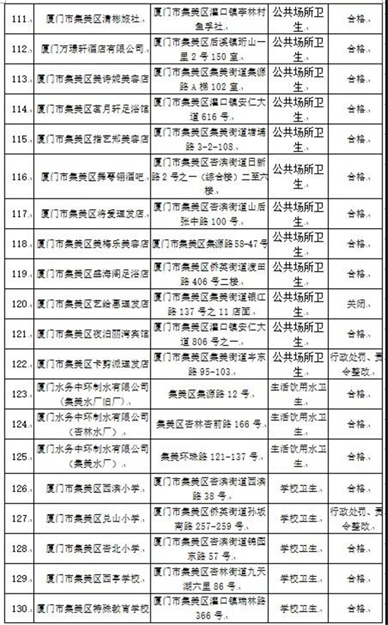 厦门市集美区2020年国家双随机卫生监督抽检结果出炉