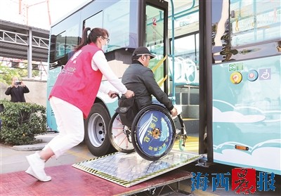 厦门无障碍公交投用 配备伸缩踏板和残疾人专区