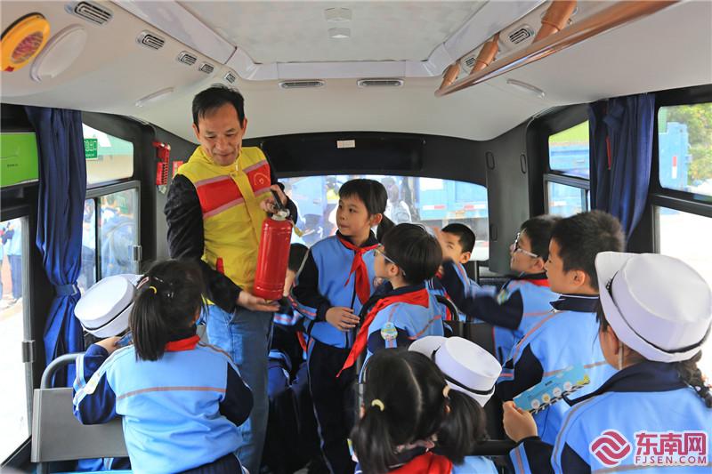 了解公交车上安全锤、灭火器位置(思明交警大队供图)