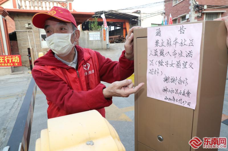 蔡长安用毛笔写的通告(殿前街道供图) 移动的“婆婆嘴” 三航大院是典型的老旧小区,老年人多,而且公共区域卫生消毒、小区车辆、人员进出流动得不到监测管理,这无疑增加了疫情防控的难度。 基层防疫初期,宣传工作迫在眉睫,除了编写标语口号,蔡长安还不断更新宣传海报,走家串户,把疫情防控第一手信息送到每户居民手上。在小区内,每个楼道入口处,密密麻麻的一张张海报、通告,很多都是蔡长安粘贴的。 “要戴口罩、勤洗手、勤消毒、勤通风,非常时期不要扎堆、不要聚会……”定点宣传还不够,“移动喇叭”还得有。 “疫情防控工作必须做到一个居民都不能少,特别是小区内老人多,信息接收的渠道有限,对暂时不理解不配合的居民就竭尽所能让他们理解和配合,只有这样,才能守住社区的防线。” 用蔡长安的话来说,这没有捷径可走,更没有所谓的简便方法,靠的就是那张反复劝导的“婆婆嘴”,以及对小区每一个居民的责任心。 夫妻齐上阵 熟悉蔡长安的居民都知道,他热心不是一天两天的事了。已有30多年党龄的蔡长安,不仅是个热心肠,还在当地居民心中颇有威望。有他在,居民们很安心,用大家的话说就是“他说话,管用!” 蔡长安不仅自己身体力行,他还带着妻子吴丽珍成为三航大院疫情防控点的其中一名志愿者。夫妻俩错开值班点,一人守下午,一人守晚上。除了测量体温、进出人员信息登记外,他们还是小区的“快递员”,为小区居家隔离的住户提供买菜、倒垃圾等生活服务。用他们的话来说,“我们共同的敌人是病毒,什么时候都不能寒了群众们的心”。 疫情期间,小区的群众们每天总能看到蔡长安跑东跑西、跑上跑下的身影。看在眼里的居民称他为小区“守护神”,这给小区居民们莫大的安全感,大家纷纷对蔡长安竖起了大拇指。 |
