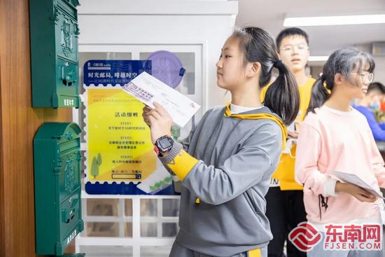 同学们将写给未来自己的信投入信箱 (中化福建石油供图) |