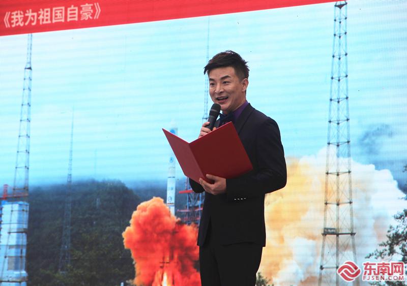 厦门经济交通广播主播万辉以《我为祖国自豪》为题作宣讲(东南网记者 李霖 摄)