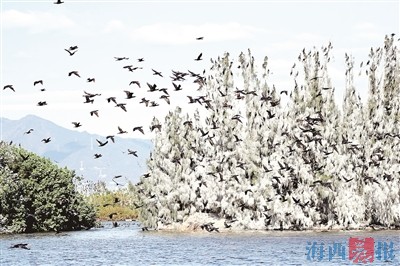 上万只鸬鹚恋上厦门园博苑
