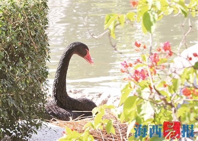园博苑的黑天鹅在专心孵蛋。(左图)记者 唐光峰 摄