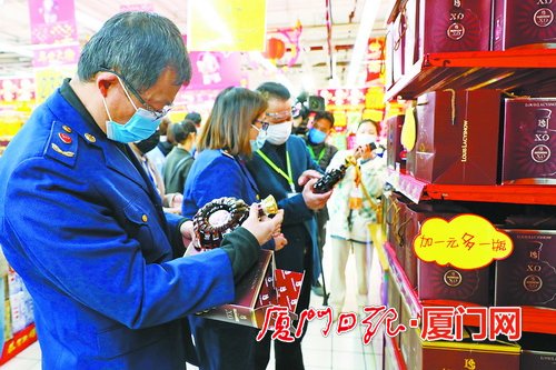 2021年1月19日,执法人员正在厦门大润发超市体育路门店查酒。 厦门日报讯(文/记者 陈 泥 通讯员 刘启国 图/记者 王协云)新春佳节临近,厦门酒类市场火热起来,商家、卖场纷纷推出各种酒类促销活动,吸引市民前来选购。昨天是“月月十九查酒”专项执法行动2021年的首个行动日,市食安办组织市场监管执法人员、市民代表和媒体记者,对市区酒类销量较大的大润发、麦德龙两家超市开展突击检查,重点检查超市采购酒类时是否严格执行进货查验记录制度、酒类食品标签是否符合法律法规和相关标签标准的规定、进口酒是否有中文标识、是否严格遵守进货查验和索证索票制度等。从检查结果来看,现场未发现销售无有效合法票据或无中文标签进口酒类等违法违规行为。 厦门大润发超市(体育路店) 酒类标签标识规范 台账信息化管理待提升 昨日上午,记者随同检查人员首先来到厦门大润发超市体育路门店。走近酒类销售区,就能看到几排货架上琳琅满目地摆放着各种品牌的白酒、红酒、洋酒和啤酒,不少货架上方都悬挂着醒目的“特价商品”促销牌匾。“酒的品类比平常多了很多,摆放区域扩大了。”超市工作人员介绍,逢年过节酒都是饭桌上的必备品,商家们自然要抓住这一销售旺季。 在一排酒类货架前,市民代表和厦门执法人员一起,抽查了700毫升装“路易拉奇诺XO白兰地”、500毫升装浓香型白酒“中国西凤陈酒”两款酒,查看瓶身上的中文标签和货架上的价格标签。记者看到,这里销售的瓶装酒,大多数瓶身上标签都齐全规范。 “按照国家相关规定,进口商品在入境时必须配有详尽的中文标签。因此,细看进口商品的中文标签也就成了国内消费者用以辨别进口酒类质量的最佳方法。”执法人员表示,按照《中华人民共和国食品安全法》(以下简称《食安法》)规定,进口食品标签上须对产品的产品名称、原产国、配料等信息进行详细标注。 在洋酒销售区,一款标价498元/瓶的700毫升装“博尔德里百事吉拿破仑XO白兰地”,因瓶身造型酷似“人头马路易十三”,引起了市民代表、厦门市酒类销售行业协会会长黄振兴的注意。从酒瓶上的中文标签看,这款XO白兰地的原酒产国为法国,经销商为广州市吉喆酒业有限公司。“这款酒进货渠道是否正规?”在他的提议下,执法人员要求超市工作人员当场提供该款洋酒的进口货物报关单、检验检疫证明、上市凭证等索证索票资料。 超市工作人员表示,大润发实行的是总部统一配送的经营方式。在现场,经过一番联络,工作人员最终提交了企业总部传来的电子版《入境货物检验检疫证明》《上市凭证》等台账资料。 执法人员指出,按照《食安法》第53条规定,实行统一配送经营方式的食品经营企业,可以由企业总部统一查验供货者的许可证和食品合格证明文件,进行食品进货查验记录,但从保障消费者知情权的角度,在给门店配送时,最好随附产品质量检验检测报告(产品合格证明),或为门店开具上市凭证以随时备查。针对超市的索证索票工作,市场监管部门下一步也将加强指导,引导企业完善、提升进货票证的信息化管理。 在这家超市,第三方检验机构工作人员现场选取了厦门高粱、客家黄酒和糯米酒三种酒的样品,将带回实验室进行添加剂、酒精度等项目的检测。 厦门麦德龙(湖里商场店) 全品类商品登记备案 酒类商品均有上市凭证 春节作为中国最隆重的节日,是高端白酒的销售旺季。在厦门麦德龙湖里商场店,500毫升装的53度贵州飞天茅台零售价达3798元/瓶。昨日的行动中,市场监管执法人员依据相关法律法规要求,检查了该店酒类商品索证索票制度落实情况,重点对茅台、习酒以及进口洋酒中的轩尼诗等畅销品牌进行抽查,查看酒类的标签标识是否规范、进货台账是否完备等。 “《福建省食品安全信息追溯管理办法》明确规定,特定食品零售经营者(包括大型食品零售企业、实行统一配送经营方式的食品销售企业)应当按照规定上传食品的追溯码、名称、品牌、规格、数量、进货日期、销售日期,以及供货者和购货者的名称、地址、联系方式等食品安全追溯信息。”执法人员指出。经现场核对,该超市索证索票制度落实比较到位,已按要求在厦门市食品生产经营者“入市必登”系统登记备案,其所售商品均可经该系统打印出“上市凭证”。 检查中,对执法人员随机抽查的2019年9月5日生产的飞天茅台,以及2019年6月9日生产的轩尼诗xo干邑白兰地两款酒类商品,超市工作人员均当场在系统中找到了相应批号的进货查验记录和上市凭证。 在这家超市,第三方检验机构工作人员随机选取了牛栏山二锅头、衡水老白干两款白酒,将带回实验室进行添加剂、酒精度等项目的检测。此次专项行动的酒类抽检结果,将在下一期公布。 【回头看】 上期酒类抽检结果 全部合格 2020年12月19日,厦门市市场监督管理局邀请第三方检测机构和媒体记者随同执法人员,对位于同安区苏店村的两家高粱酒生产厂家“厦门市同安特泉酒业有限公司”“厦门市银琦酿酒有限公司”进行检查,现场还对这两家企业进行各1批次高粱酒样品监督抽检。检验项目分别为质量指标:酒精度(20℃)、甲醇(按100%酒精度折算)、氰化物(以HCN计)(按100%酒精度折算);食品添加剂指标:糖精钠(以糖精计)、甜蜜素(以环己基氨基磺酸计)、三氯蔗糖;污染物指标(塑化剂):邻
