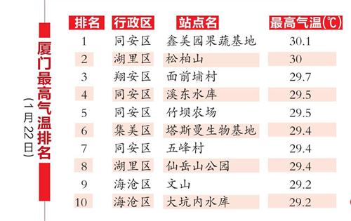 东南网1月23日讯(海峡导报记者 黄建民) 最近两天,厦门乃至整个福建天气都呈现大回暖态势。福州、同安、安溪、永春等全省多地最高气温均突破了1月同期历史高温极值。不过,今天夜间,新一轮弱冷空气将抵达厦门,稍稍缓解目前的回暖天气。28日,还有一轮强冷空气来袭,气温又将跳水。 厦门“热”出新高度 前天,厦门翔安面前埔村最高气度突破30℃,达到了30.3℃,创下今年以来气温新高。 昨天,受强盛暖气团影响,福建全省共有20个县(市)日最高气温≥27.0℃,以南靖30.1℃为最高,共13个县(市)日最高气温位居1961年以来1月同期前三位。 厦门的气温也热出了新高度。昨日清晨,东渡狐尾山厦门国家基本气象站最低气温从16℃“起跳”,在明媚阳光的持续加持下,气温蹭蹭上涨,至下午1:18,最高气温达到26.7℃,较之昨日上升1℃,再度刷新2020年入冬以来的高温纪录。全市午后最高气温出现在同安鑫美园果蔬基地,达到30.1℃。 据厦门历史气象数据显示,1月下旬厦门极端最高气温曾达到27.9℃,出现在1959年1月29日。昨日的26.7℃在1月下旬的高温纪录里排名第四。 而岛外的同安国家气象站,昨日午后最高气温达到了28.9℃,打破自1956年建站以来1月的最高气温纪录。此前的历史极值为28.4℃,出现在1959年1月29日和2021年1月21日。 福建多地破高温极值 在全国前天的高温分布图上,福建和广东两省多地霸屏高温排行榜前十,其中,福建华安、永春、仙游、南靖、永泰五地上榜,分列第二、三、五、九、十名。此外,泉州、福州高温更是纷纷破纪录!泉州安溪29.7℃、永春29.3℃,均突破1月历史最高气温极值(安溪:2002年,29.5℃;永春:2008年,29.0℃);福州市区乌山国家气象站最高气温27.4℃,打破了1951年有气象记录以来1月同期最高值(此前最高值为2002年1月16日及2005年1月25日的27.3℃)。 就近期天气大回暖现象,中国天气气象分析师张娟分析称,这主要有两个原因造成:一是近期影响我国的冷空气势力较弱;二是南支槽开始活跃。南支槽活跃,引导西南暖湿气流涌入我国中东部。同时,副热带高压也较常年同期偏强,副高西侧的偏南风对于影响我国的暖湿气流也起到助力作用,共同带来明显的升温。 两波冷空气先后来袭 不过,这样的回暖天气只能维持到今天。 今天夜间,随着新一轮弱冷空气抵达,厦门将开启降雨降温模式。但由于冷空气强度小,降温幅度不大。明天至28日,厦门天气将再次转为晴好,白天最高气温维持在19℃-22℃,夜晨最低气温维持在10℃-13℃。 28日夜间,又将有一轮强冷空气来袭。届时,厦门气温将明显下降,市区及沿海地区风力持续较强。 |