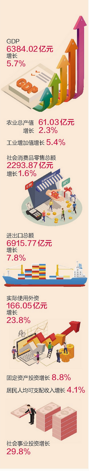 厦门日报讯(记者 沈彦彦 通讯员 张绍勇 邵苇)2020年,厦门实现地区生产总值(GDP)6384.02亿元,比上年增长5.7%,位居全省第二位,这也是厦门GDP增速连续两年保持副省级城市第一位。昨天上午,厦门市统计局召开新闻发布会,通报并解读2020年厦门经济运行情况。 过去的一年,厦门市委市政府统筹推进疫情防控和经济社会发展,扎实做好“六稳”工作,全面落实“六保”任务,全方位推动高质量发展超越,全市经济总体平稳、稳中有进、进中有新、新中有为,呈现“企稳”“趋优”“向好”态势。 步子稳 高质量发展稳步推进 翻开厦门这一年的“经济日历”,一组组亮眼的数据指标,一个个落地的重点工程,一个个关乎民生的决策,奏响了稳中向好的发展之音。 2020年全市GDP比上年增长5.7%,其中,第一产业增加值28.89亿元,增长2.5%;第二产业增加值2519.84亿元,增长6.1%;第三产业增加值3835.29亿元,增长5.5%……2020年,厦门主要经济指标增速在全省领先——13项主要指标增速位居前3,其中社会消费品零售总额、实际使用外资等5项指标增速居首位,GDP、工业、固定资产投资等6项指标增速居第2位。 面对疫情的严峻挑战,保障“菜篮子”成为重中之重,2020年,厦门在本地设立8000亩蔬菜基地,确保农副食品供应充足。据统计,厦门去年水果总产量增长11.4%,食用菌增长6.0%,蔬菜增长0.9%,生猪存栏20.09万头,增长45.0%。农业生产平稳,农业总产值稳步增长2.3%,意味着市场供应更有保障。 工业稳步提升,建筑业较快增长,服务业恢复好转,高技术产业拉动有力。厦门重点行业复工复产、增资扩产提速扩面,工业增加值比上年增长5.4%,建筑业增加值比上年增长8.6%,服务业增加值比上年增长5.5%。 韧性好 加速构建“双循环” 2020年,厦门以更大的宏观政策力度对冲疫情影响,以更加开放的态度拥抱国内国际双循环的构建。 从中山路步行街改造提升到全市促进消费专项行动,新产业、新业态快速发展,市场暖意显现。2020年,厦门全年实现社会消费品零售总额2293.87亿元,比上年增长1.6%,较年初提高11.8个百分点。 直播带货、VR看车、无接触配送,这一年,厦门市民的消费生活正被互联网、大数据、人工智能等技术改变,海沧云创直播小镇、福客电商直播基地……20多家直播基地拉开了厦门打造电商发展高地的序幕。 值得一提的是,消费模式有序迭代,线上线下加速融合,数字消费强势增长,全市限上企业通过互联网实现零售额483.32亿元,增长22.5%,拉动全市社会消费品零售总额增长3.9个百分点;餐饮业企业全年实现线上餐费收入16.1亿元,增长5.85倍,拉动全市餐饮营业额增长63.5个百分点。数字消费、新能源汽车、必需品消费等表现良好,金银珠宝类增长达45.9%,新能源汽车增长40.7%,粮油、烟酒、日用品等分别增长21.2%、32.3%、24.5%。 2020年,全市实现进出口总额6915.77亿元,增长7.8%,其中,出口3572.92亿元,增长1.2%;进口3342.85亿元,增长16.0%,连续7个月正增长……“国内国际双循环”加速构建,进出口增幅持续提高,使用外资快速增长,在复杂形势下逆势增长,厦门成为全国瞩目的焦点。全年,全市新设外资企业987个,实际使用外资166.05亿元,增长23.8%。 【解读】 交出亮眼答卷 擘画超越蓝图 ![]() 过去的一年,厦门经济运行情况如何?有哪些新亮点、新特点及新热点?昨日,厦门市统计局局长郭华生,厦门市统计局总统计师李薇就2020年厦门经济社会相关热点答记者问,权威、全面分析解读厦门如何交出亮眼答卷,擘画超越蓝图。 总体情况 经济呈现积极向上态势 记者:2020年,面对新冠肺炎疫情的严峻考验和复杂的国内外环境局势,厦门经济发展成效仍然显著。如何点评厦门这一年经济运行的情况? 郭华生:2020年,在市委市政府的坚强领导下,厦门统筹疫情防控和经济发展成效显著,全市经济总体呈现积极向上态势,可以用“快、好、新”三个字来点评。 快GDP增速居副省级城市首位 一是“快”,体现在速度上。GDP增速逐季提升。上半年增长0.6%,实现由负转正;前三季度增长3.1%,在全省中提速最快;全年增长5.7%,连续两年保持副省级城市第一位,位居全省第二位。主要指标增速全省领先——社零、实际外资等5项指标增速居首位,GDP、工业、固投等6项指标增速居第2位。 好经济发展保持较高效率 二是“好”,体现在质量上。经济发展保持较高效率。厦门以占全省1.4%的土地面积,创造出全省14.5%的GDP、26.2%的财政收入和近50%的外贸进出口。土地产出率3.76亿元/平方公里,每度电创造GDP21.90元,人均GDP达2万美元以上,这些指标在全省以及全国大中城市中保持前列。 政府和企业均实现创收。在支持抗疫、企业减负近400亿元情况下,两项财政收入仍实现增长,财政总收入、地方级财政收入分别增长1.7%和2.0%;企业生产效益回升好转,规上工业企业利润总额增长25.1%,经济效益综合指数提高18.55个点。 新数字经济高技术产业有活力 三是“新”,体现在结构上。数字经济活力强,限上网络零售增长22.5%,高于全省平均水平8.3个百分点;亿元以上网络零售企业51家,增加14家;网上点餐广受欢迎,网络餐费收入增长3.7倍;直播经济迅猛发展,全年直播达16.3万场。高技术产业韧性好,高技术制造业占规上工业增加值的39.8%,增长8.9%;高技术产业投资增长19.4%,高于全市固投增幅10.6个百分点。“三高”企业后劲大。全市“三高”倍增企业304家,完成计划的121.6%。全年增速超20%的“三高”
