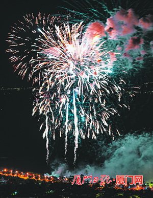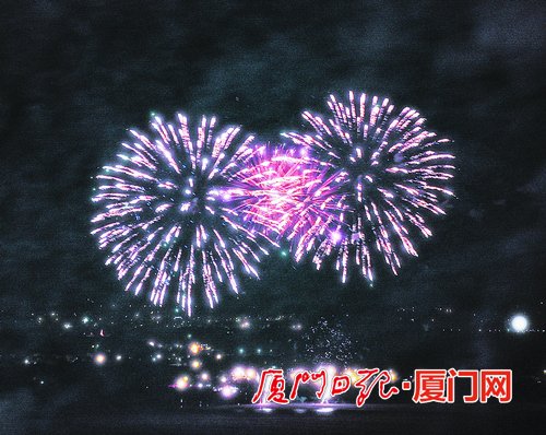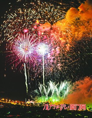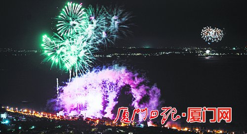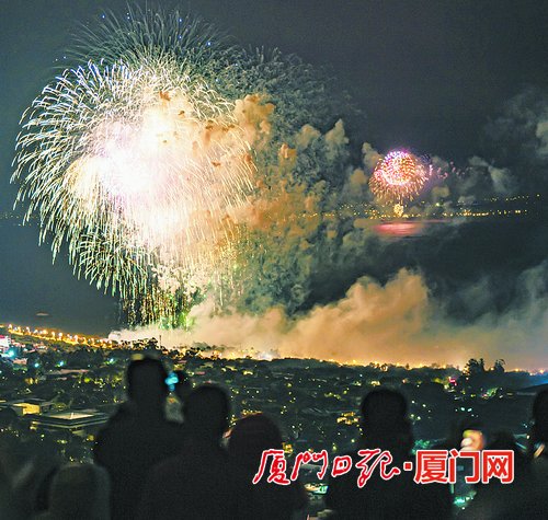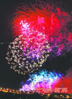 两岸同放焰火。左为环岛路的焰火。(本组图/厦门日报记者 林铭鸿 摄)