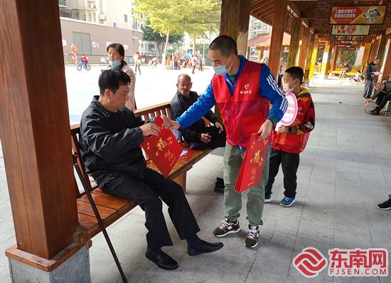 志愿者将腊八粥送至老人家中(金山街道供图) 东南网2月23日讯(本网记者 夏菁 通讯员 周志雄)为传承弘扬中华优秀传统文化,进一步丰富辖区居民的文化生活,近日,厦门市湖里区金山街道开展了一系列“我们的节日--春节”主题活动。 爱心暖城 开展志愿服务活动 春节期间,金山街道开展了疫情防控、爱心关怀、洁净家园、移风易俗等系列志愿服务活动,让辖区充满人间温情。 金安社区银龄志愿者将爱心单位捐赠的腊八粥送到社区高龄老人、困难老人家中,为老人们送去关爱和新春祝福。为营造春节喜气祥和的气氛,金安社区志愿者还手写春联260余副送给社区空巢老人及困难群众,为他们增添了暖意。 春节前夕,金山街道及辖区各社区组织共建单位、街道机关干部职工、社区工作人员、党团员、居民志愿者等共1000余人开展了“迎新春 美家园”洁净家园志愿活动,同步开展疫情防控宣传。