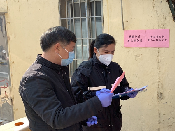 图四:叶燕芬(右)检查疫情防控工作。 坚守岗位有拼劲 福建省三八红旗手:叶燕芬 现任集美区杏滨街道锦鹤社区党支部书记、居委会主任 作为一名服务基层二十余年的妇女干部,她事事亲力亲为,勇于担当做表率,紧抓党建带妇建,理清工作思路,不断提升基层妇联组织建设。 在疫情防控期间,刚做完手术、身体还在恢复期的她带病上岗,24小时保持战斗状态,从隔离住户的物资采购到人员执勤安排、入户采集信息,再到环境消杀部署等,她都身体力行,足迹遍布社区内各个小区、商家、超市等防疫重点区域,靠着一股“拼命三郎”式的精神,完成了各项工作。 她积极引进第三方专业服务机构,实施妇女儿童关爱项目,为妇女儿童提供行之有效的综合服务。她发挥党员先锋队和社区妇女调委会作用,对接各方面资源,帮助妇女同胞解决困难30多人次、协调邻里纠纷20多起。她号召小区才艺达人、退休妇女同胞,牵头组建快板队,推广快板队自编的《垃圾分类快板歌》,让居民在朗朗上口的歌调中掌握垃圾分类知识。