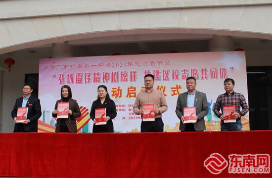启动仪式现场 东南网记者 夏菁 摄 东南网3月13日讯(本网记者 夏菁 通讯员 苏芳文)社区与学校、小学与中学、学校与社会组织“牵手”,协作联动壮大志愿力量。13日上午,“弘扬雷锋精神树榜样 共建区校志愿共同体”活动启动仪式在厦门翔安第一中学举行。此次翔安区在全市首创区域志愿共同体,揭开了多样化志愿服务“抱团”发力的序幕。 牵手合作 壮大志愿服务力量 今年是毛泽东主席“向雷锋同志学习”题词58周年,也是厦门市首次设立志愿者日。为进一步弘扬雷锋精神,浓厚志愿服务氛围,翔安区马巷街道7个社区与辖区中小学、社会组织“抱团”发力,共建区域志愿服务共同体。 活动现场,马巷街道友民社区、五美社区、后亭社区、三乡社区、五星社区、舫星社区、滨安社区与翔安区舫山小学、翔安区马巷中心小学,翔安区第二实验小学,翔安区舫山第二小学、马巷青年创业促进会、翔安第一中学等进行了签约仪式,正式启动区域志愿共同体建设。 “马巷街道辖区的学校、社区、社会组织能积极响应时代号召,化零为整,整合资源,以共同体的形式开展志愿服务,这是一次很有意义的尝试。”马巷街道办事处主任文杰表示,这将让社区居民受益,让学生获得成长,让社会组织发热,让教育事业发光。 翔安一中校长孙东耀也认为,牵手建立志愿服务共同体,有助于更好地协作联动,更实地开展志愿活动,更真地服务社会大众。 “我们要一起丰富共同体内涵,旺盛共同体生命力。”友民社区书记方保前表示,期待用学校智力资源和人力资源助力社区党建、居务和家庭教育等事业发展,社区也将积极为片区学校发展贡献力量,为学生实践和教师社会担当提供平台。