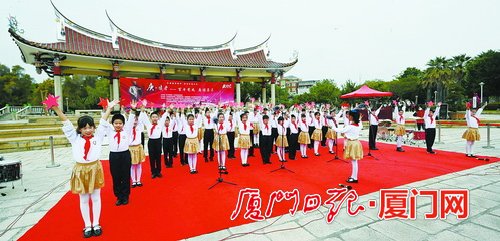 小朋友们合唱《红星闪闪》。(记者 黄晓珍 摄) 厦门日报讯(记者 林桂桢 通讯员 吴觅亮)“红星闪闪放光彩,红星灿灿暖胸怀,红星是咱工农的心,党的光辉照万代……”3月13日上午,位于集美的鳌园和归来堂传出悠扬的歌声和琅琅的读书声。在这两处同步举行的“庚·读者”——“百年党史 庚读集美”经典诵读活动启动仪式上,来自集美小学、集美二小的百名学生登台献艺,以唱红歌、颂党恩、吟经典等方式重温百年党史、传承嘉庚精神。 集美区委宣传部相关负责人表示,集美区将结合嘉庚精神,创新开展青少年党史学习教育,通过“课堂+实景”“教育+旅游”“宣讲+潮玩”形式,引导青少年活悟活学活用。接下来,将组织革命遗址现场“庚·读者”经典诵读,将革命遗址与旅游线路串联开展红色研学;组织老干部、老学者、思政课老师参与嘉庚精神公益宣讲;以及通过大型交响合唱《嘉庚组歌》、“阿庚伯”说党史动漫等形式,分类分层深入学校开展青少年党史学习教育,引导青少年知史爱党、知史爱国,培养担当民族复兴大任的时代新人。 打造品牌项目 掀起青少年学习党史热潮 手捧闪闪红星,放声高歌颂党恩,一曲《红星闪闪》唱出了孩子们对党和国家的赤诚之心;悠扬的《集美学校校歌》响起,带大家重温嘉庚先生爱国爱乡、倾资兴学的伟大事迹……启动仪式上,集美小学和集美二小的学子们精心准备了红歌校歌合唱、主题诗歌朗诵等20多个节目,“声”入人心,把百年党史、嘉庚精神真正唱进心田。 “‘庚·读者’寓意有二:一是取谐音‘耕读’一词,意为‘耕读传家’,既学知识,又学做人;二是取自嘉庚先生的名字,围绕嘉庚精神开展文化宣传活动,进一步弘扬嘉庚精神。”嘉庚文化志愿服务队队长贺春旎介绍,“庚·读者”经典诵读活动自2019年启动以来,每周末组织集美幼儿园、集美小学、集美二小、集美中学的学生在鳌园、归来堂等地,向海内外游客传播嘉庚精神,目前已举办了近200期。 今年是中国共产党成立100周年,为了让青少年更加深入地学习党史、弘扬嘉庚精神,本年度“庚·读者”经典诵读活动将主题定为“百年党史 庚读集美”,将利用周末或节假日时间,以集美鳌园和归来堂为舞台,颂党恩、唱红歌、吟经典,让党史学习教育热潮在青少年群体中澎湃涌动,打造集美区开展党史学习教育、弘扬嘉庚精神的又一常态化品牌项目。 “爱国主义是中华民族精神的核心。在中小学阶段开展党史学习教育、爱国主义教育,具有非常重要的意义。”集美二小德育处副主任陈怡靖说,两年多来,学校坚持每周组织学生参与“庚·读者”经典诵读活动,引导学生传承嘉庚精神、培养爱国情操。今年,结合建党百年主题,学校还将开展“红心向党”知识竞赛活动,教育孩子们爱国爱党爱人民,成长为合格的社会主义接班人。 |