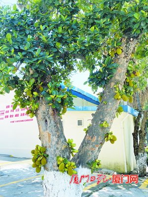 菠萝蜜从树干到高处的树枝上,结满了果实。 厦门日报讯(文/图记者 卢琛)最近,市少年儿童图书馆里的一棵菠萝蜜,从树干到树枝,结了密密麻麻近40颗果实。有市民提出疑问:园区里有不少青少年出入,还有一所幼儿园,来日成熟后是否会砸伤从树下经过的孩子们? 对此,市少儿图书馆物业人员表示:到了成熟季,会对个头大的果实进行采摘,预防落果伤人。同时,对于市民的疑惑,植物学专家也做了解答。 【现场】 一棵树结果近40颗 引路人拍照围观 24日上午,记者来到市少儿图书馆,看到园区共有三棵菠萝蜜,一旁几位市民正在拍照发朋友圈。其中一棵从树干到高处的树枝上,长了不少果实和花苞。记者粗略数了数,肉眼可见的、已经结成的果实就有近40颗。 “现在就长这么多,以后长大了要怎么处理呢?会不会掉下来砸到孩子呢?”一旁拍照的市民提出疑问。 【工作人员】 平时自然“放养” 成熟季适当采摘 为此,记者找到园区内物业工作人员,了解具体情况。物业人员告诉记者,这三棵菠萝蜜已经种植在园区内很多年了,每年都结果,虽然数量多,但个头都不大,因此到了成熟季,他们也不会对植物生长做过多的干预。 “个别枝头上如果有长得较大的果实,我们会提前采摘下来,防止落果伤人的事件发生。”物业人员补充道。 【专家说法】 果实太密分食营养 一般不会长太大 带着市民的疑惑和担忧,记者咨询了厦门华侨亚热带植物引种园的何丽娟博士。 “菠萝蜜如果没有经过养护和修剪,果实普遍会密集,就像这三棵菠萝蜜,但是能长大成熟的估计不多。”何丽娟说,果实太多的话,会彼此竞争养分,树的营养不够,自然没办法每个果都长得好。 |