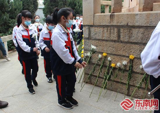 学生向革命烈士敬献鲜花 东南网记者 夏菁 摄 |