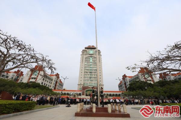 东南网4月6日讯(本网记者 刘玮 通讯员 章韵洁 易雪妍 仇汉宇)芳菲四月,春回大地,万物复苏。4月6日,伴着清晨的第一缕阳光,厦门大学迎来了她的百岁生日。为庆祝厦门大学建校100周年,厦门大学近350名师生齐聚思明校区嘉庚广场,举行隆重的升国旗仪式。