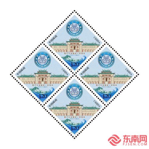 “厦门大学建校一百周年”纪念邮票四方连(厦大供图)