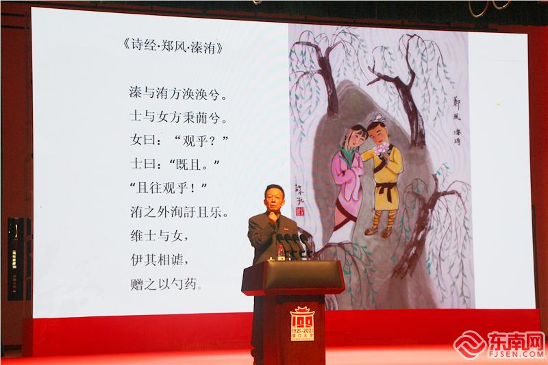 易中天认为农历三月三日才是中国的情人节(东南网记者 刘玮 摄) 有趣的是,易中天在讲座中阐述了另一个观点,“农历三月三日才是中国的情人节,七月七日是商人搞出来的。” 在谈到周如何“以乐致和”时,易中天以《诗经·溱洧》为例。他说,其中记载的就是三月三春游时,溱洧河边男女自由恋爱的画面,那画面,简直就是东周版的《花儿与少年》。他在现场特地播放了一段青海民歌《花儿与少年》,播完不禁当众哼唱起那句洗脑歌词“小呀哥哥小呀哥哥呀……”引得观众捧腹。 “三月三就是私奔的季节,这一天官方是不管的,这一天自由恋爱找的对象都合法。”他调侃,“七月七在古代叫‘七巧节’,比的是心灵手巧,所以我把七月七称为中国劳动节。劳动节谈什么恋爱?” 在讲座最后,易中天对厦大表示感谢。他说,“1992年来厦大时,我只身一人,孤苦伶仃。是厦大接纳了我,包容了我,帮助了我,支持了我,培养了我。而且,几乎没有做任何干预,所以我称之为‘我在厦门大学的野蛮生长’。所以我有了结论:何谓大学?非大厦也,亦非大师也,乃大度也。”回忆起在厦大的时光,易中天自嘲:“我这人毛病挺多,言不谨行不慎,历任校领导对我都很宽容,所以今天我还能站在这里。”
