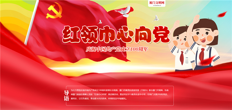 为积极响应中央文明办发出《关于开展“童心向党”教育实践活动的通知》的号召,大力营造庆祝中国共产党成立100周年浓厚氛围,近日,厦门市集美区委宣传部(文明办)联合厦门文明网、东南网厦门频道在微博上发起“红领巾心向党”微话题活动。
