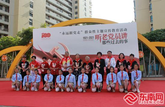 少先队员为老党员们佩戴红领巾,并献上鲜花。东南网记者 夏菁 摄