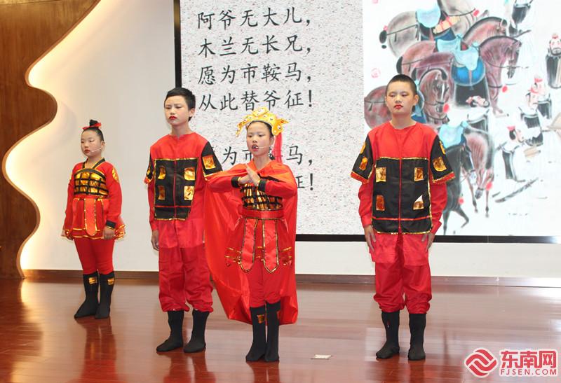 学生通过情景演绎,诵读《木兰辞》。 东南网记者 夏菁 摄 |